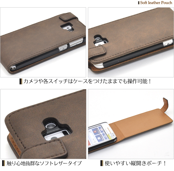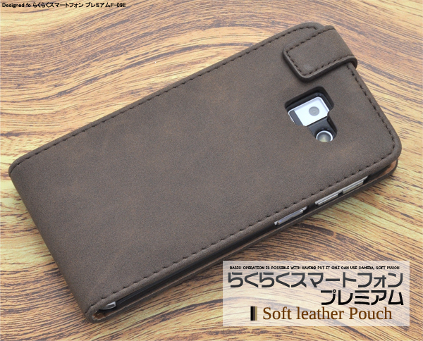 滑らかな触り心地!らくらくスマートフォン プレミアム F-09E用ソフトレザーケースポーチ