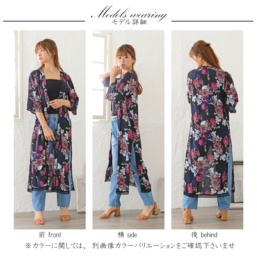 春夏に続いて人気の花柄です。シンプルなコーデに羽織るだけで一気に華やかになります。
