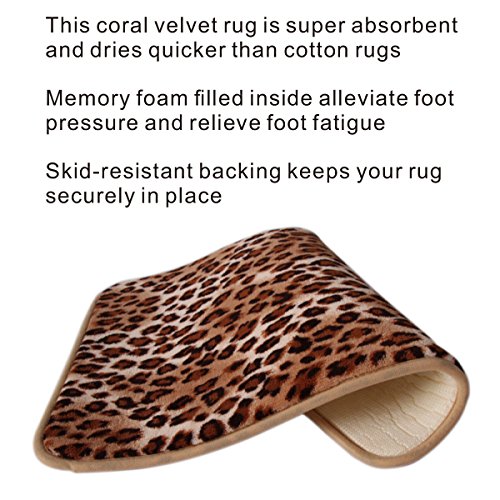 Fasisa Memory Foam Bathroom Rug - Soft and Absorbent Coral Velvet - Anti Skid Rubber Backing - Non Slip Bath Mat (Leopard Print Brown)