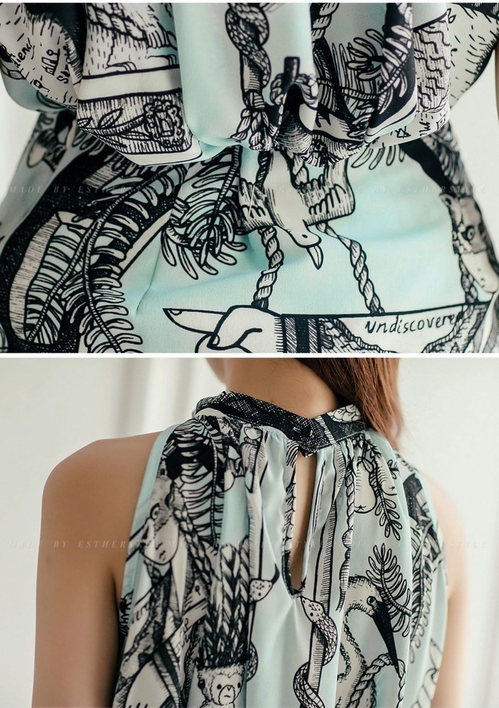 商品名:ブラウス ノースリーブ レトロ柄