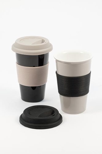 -. Title : Kaffeebecher "To Go", 2-farbig sortiert, Porzellan/Silikon, 300 ml