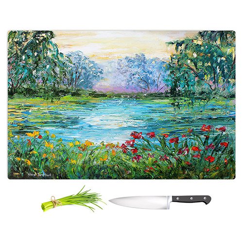 DiaNoche Designs CB-KarenTarltonMeditationPond2 Karen Tarlton-Meditation Pond Cutting Boards from, Large 15" x 11"