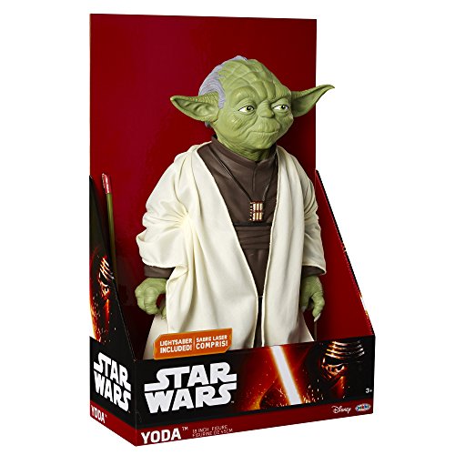 -. Binding : Toy -. Brand : Star Wars -. Color : Green -. EAN : 0039897908199 -. Edition : 1st -. Feature : Standing 20" tall, Yoda figure has five points of articulation for fully poseable action. / Additionally this self exiled Master of the Force comes with a soft goods cloak and Jedi Lightsaber / Perfect for taking on the evil Empire and training the next generation of Jedi to be / Collect all the JAKKS BIG FIG Star Wars Classic Action Figures! May the Force be with you! / For Ages 3 and up -. IsAdultProduct : 0 -. Label : Jakks -. LegalDisclaimer : WARNING: CHOKING HAZARD -- Small parts. Not for children under 3 yrs. -. Manufacturer : Jakks -. Model : 90819 -. MPN : 90819 -. PackageQuantity : 1 -. PartNumber : 90819 -. Platform : Not Machine Specific -. ProductGroup : Toy -. ProductTypeName : TOYS_AND_GAMES -. Publisher : Jakks -. ReleaseDate : 2015-09-04 -. Size : Standard -. Studio : Jakks -. Title : Star Wars Classic - 18 Inch Large Sized Yoda With Bonus Lighsabor Included -. UPC : 039897908199 -. Warranty : No Warranty