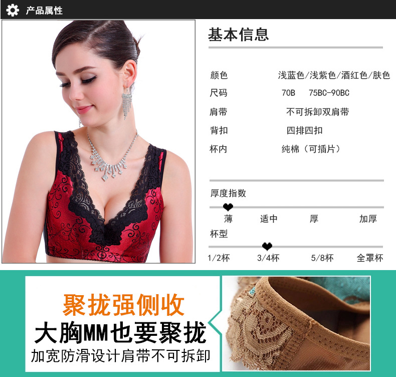 2015 New Women Sexy Bra Luxury Underwear Intimates Free shipping Seamless Wireless Push Up Bra 3/4 Cup