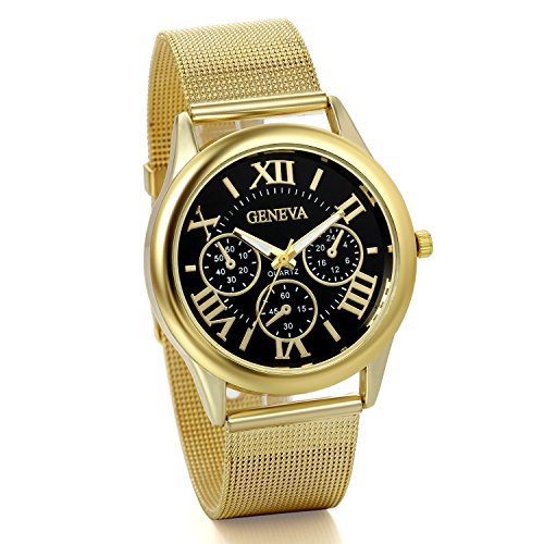 -. Title : JewelryWe Mens Quartz Wrist Watch Golden Stainless Steel Mesh Band with Roman Numbers Dial