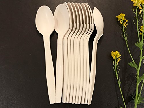 DISPOSABLE 100% COMPOSTABLE BIODEGRADABLE CORNSTARCH (CPLA) UTENSILS/CUTLERY/FLATWARE - 100 SPOONS