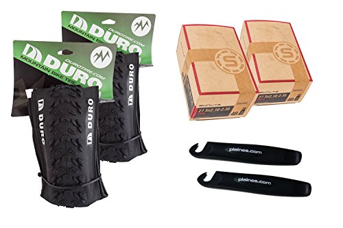 -. Title : Bicycle Tire Pair Package includes Duro Matador 27.5x2.20in (650B) Pair of Multi-Use Tread Mountain Bike Tires, 48mm Schrader Light Tube Pair and Pair of Tire Levers for Easy Installation.