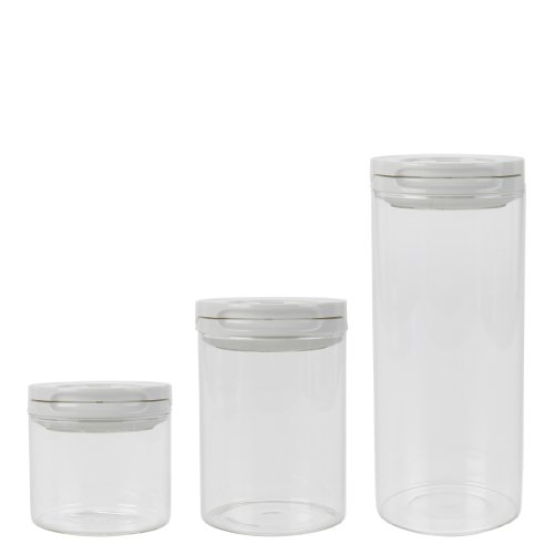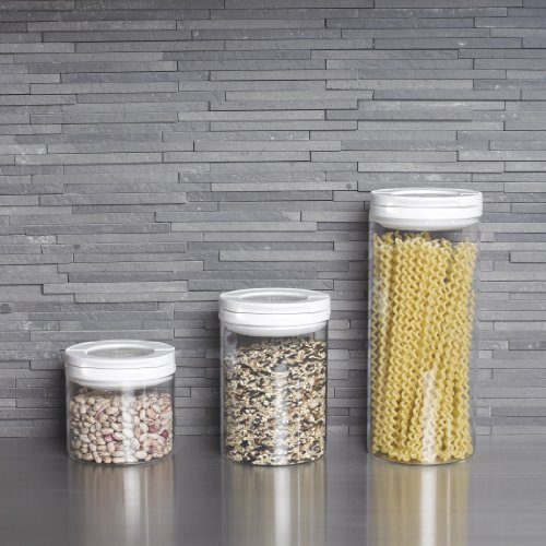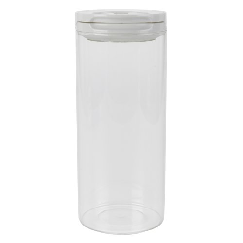 The OXO Good Grips Flip Lock Glass Canisters are airtight, stackable and space efficient, making it easy to keep your dry foods fresh and your kitchen organized. Their elegant round shape and glass construction make these Canisters perfect for countertop use. An airtight seal is created with an easy, one-handed flip of the lid ring. The lid ring can also be used as a handle when the lid is in the open position for easy access to the contents inside. Clear, durable borosilicate glass won't stain or absorb odors and the Canisters stack for convenient storage. All lids are interchangeable between sizes, dishwasher safe and come apart for cleaning. The 0.5 quart size is ideal for tea bags, spices, sugar cubes and more. All Glass Flip Lock Canisters are BPA free.