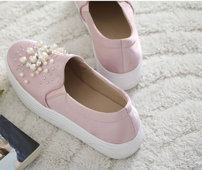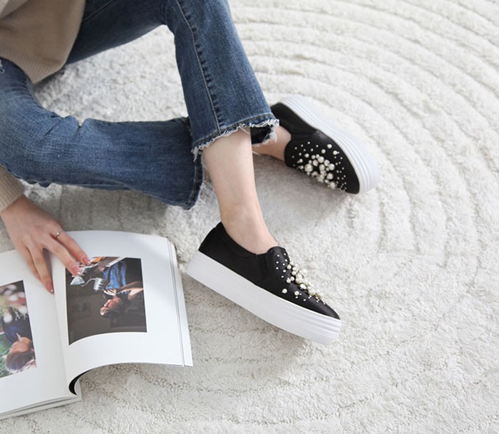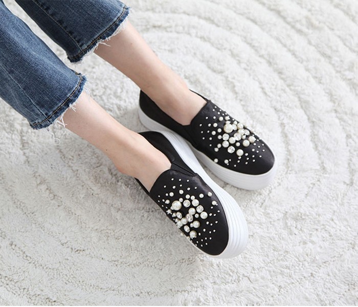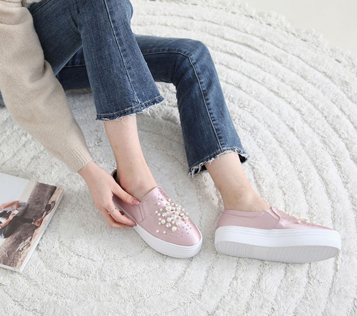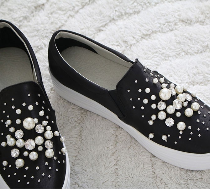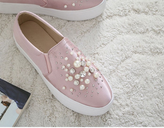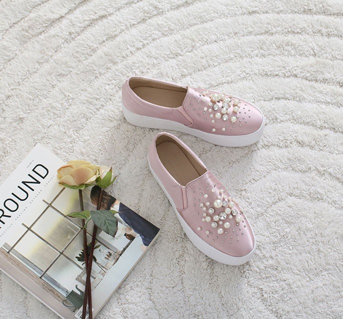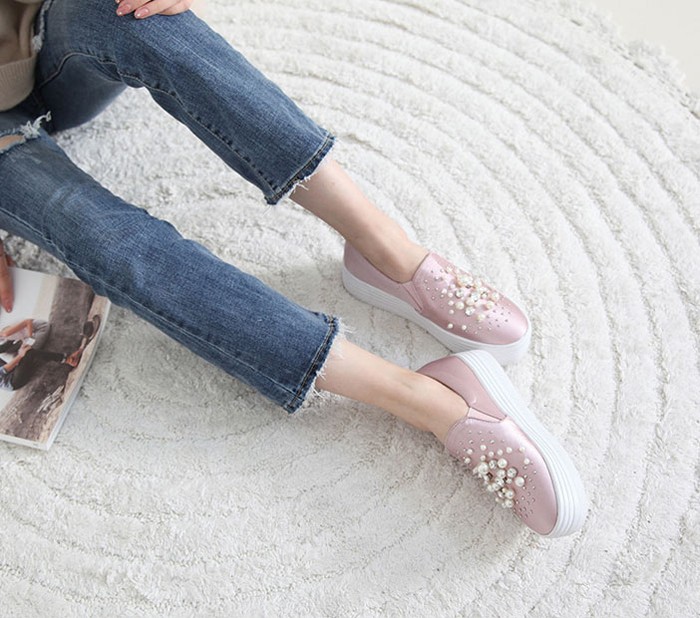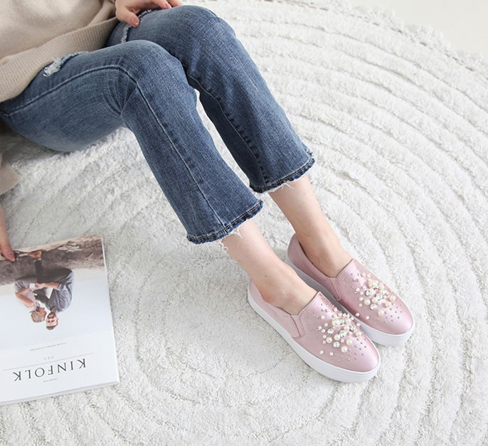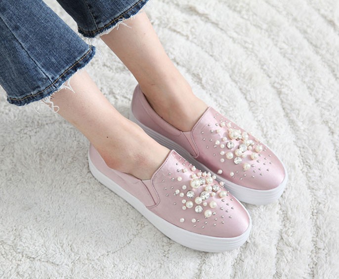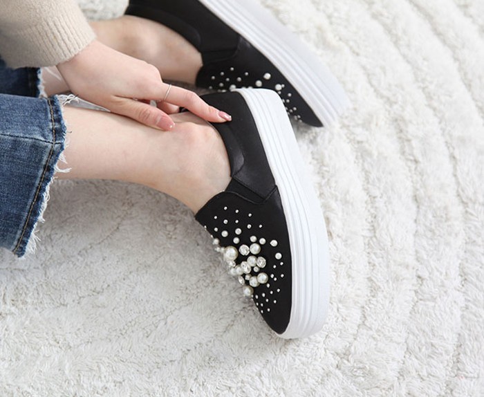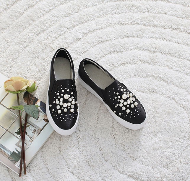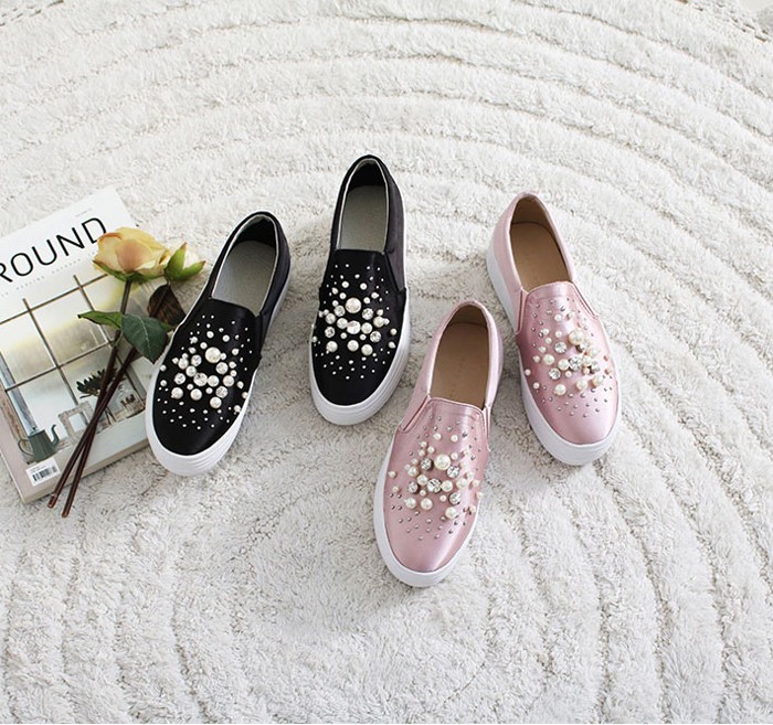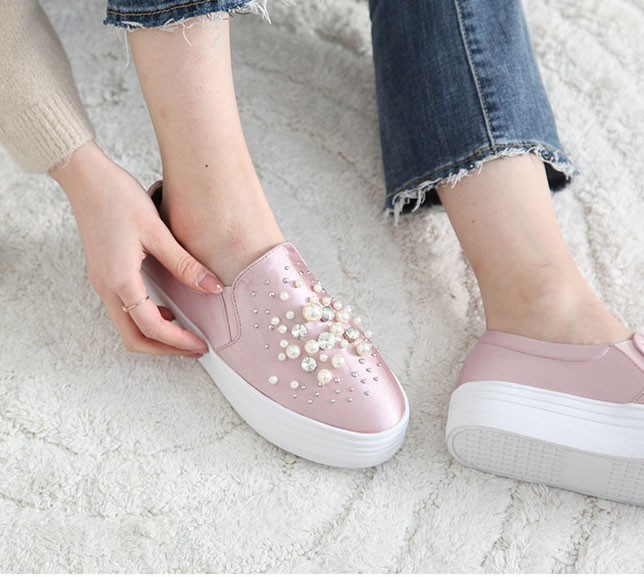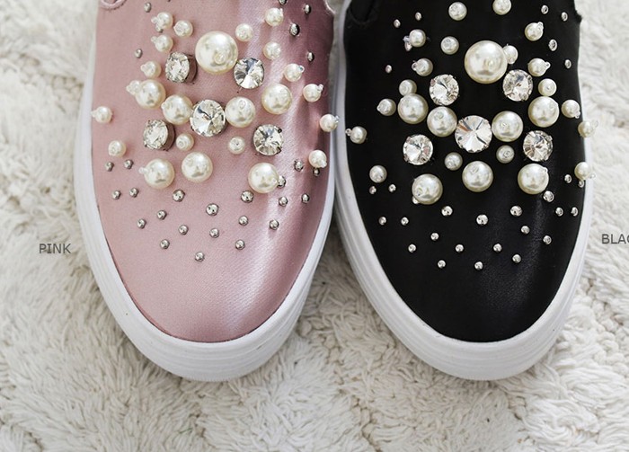 商品名:スリッポン レディース スニーカー パールビジュー 2017 秋 冬 ファッション 靴 婦人靴