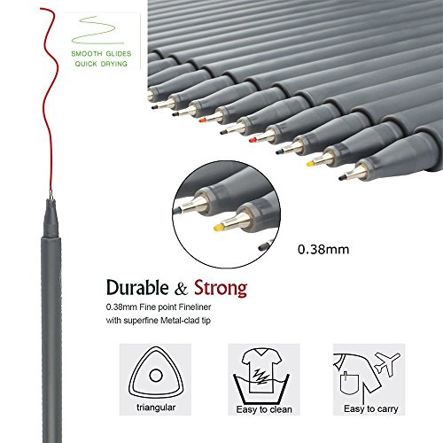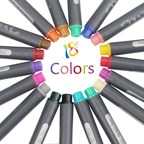 - ★18 Vibrant Colors, No Duplicates , 0.38 mm Fine Point, perfect for drawing lines & details, painting, writing, sketch, marker, signing, manga, animation, graphic, design, planner, math book, homework, bills, calendar, illustration, included artists fine-ink drawings and coloring small intricate patterns