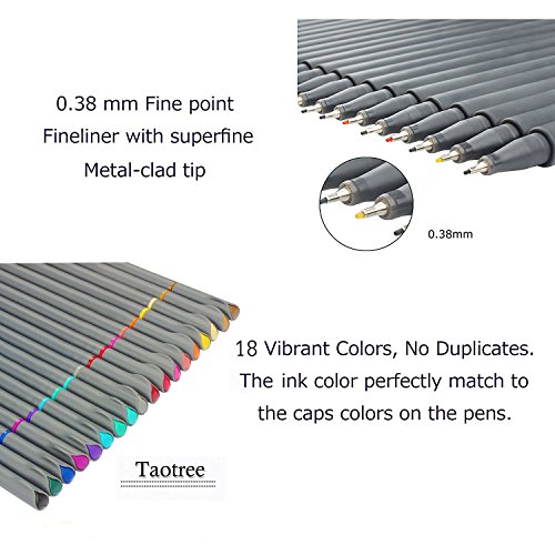 Fineliner Color Pens Set, Taotree Fine Line Colored Sketch Writing Drawing Pens for Bullet Journal Planner Note Taking and Coloring Book, Porous Fine Point Pens Markers (18 color)