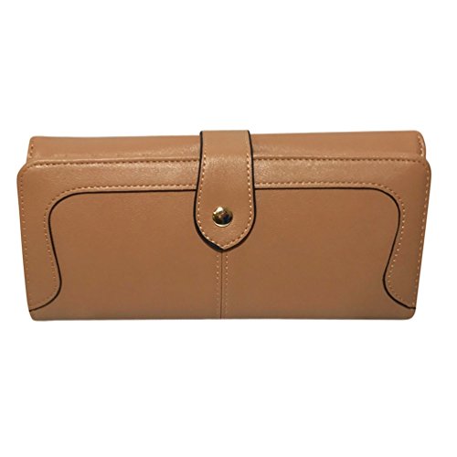 -. Feature : This women's wallet is well made. It is made of high quality PU leather. It is very durable and made to last while still being functional and stylish. This wallet smells like new right out of the package. You will receive the wallet in a gift box. The wallet will also be sealed in plastic to keep it looking nice and new. / The RFID blocking feature will keep your cards and personal information secure. The fabric used for the RFID is nice and quiet. / 18 Credit Card Slots, 1 ID Window, 3 Compartments, 1 Zippered Change Pocket, and 2 Concealed Compartments. The credit card slots are roomy and you can easily slide the cards in and out of the slots. / Our wallets for women are spacious enough to hold all of your cards, cash, change, and phones up to 5.5 inches while still remaining compact. These ladies wallets have a snap closure. Our wallets close very well even when full and they are very nice to hold. / Dimensions: 7.5"L x 3.75"W x 1.3"H - Weight: 0.7lb - Can hold a smartphone up to 5.5".