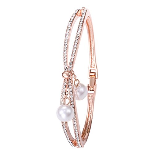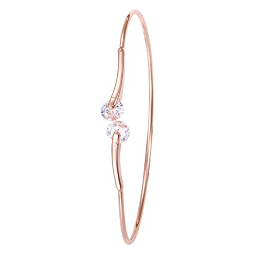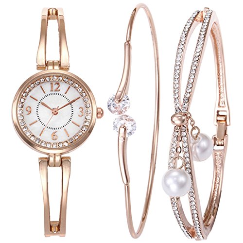 Souarts Women's Rhinestone Round Quartz Watch Simple Bangle Bracelet Jewelry Set Rose Gold Color