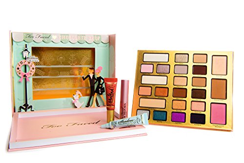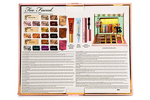 A makeup set with cocoa powder-infused products-from 21 eye shadows to blush and lipstick. Transport yourself to the ultimate chocolate shop experience with The Chocolate Shop's iconic, antioxidant-rich cocoa powder formula-infused into 21 eye shadows, a deluxe-sized Melted Chocolate Liquified Long Wear Lipstick, and a Chocolate Soleil Bronzer. They're fragranced with the decadent scent of chocolate and they'll step up your makeup looks with deluxe sizes of the bestselling Better Than Sex Mascara, Shadow Insurance eye shadow primer, the Luminizer highlighter, and a dazzling blush. It also includes a step-by-step guide Glamour Guide so you can effortlessly create three beauty looks. Set contains: - 18 x 0.03 oz/ 0.88 mL Eye shadow in Indulge (silvered taupe), Cookie Dough (matte beige/gold sparkle), Raspberry Rose (matte light pink), Sugared Raisin (shimmering silvered mauve), Guilt-Free (matte soft lavender), Tootsie (matte rich chocolate brown), Gingerdoodle (shimmering champagne), Chocaholic (matte sand), Cake Batter (matte soft peach), Butterscotch (metallic copper), Toffee Crunch (matte reddish brown), Lava Cake (dark cocoa/gold sparkle), Honey Dip (shimmering gold), Pound Cake (shimmering pinked gold), Sugar Bells (metallic silver), Mint Chip (metallic sea blue), Jingle Berry (vibrant orchid), Huckleberry (deep purple black/pink glitter) - 3 x 0.07 oz/ 0.88 mL Eyeshadow in Dessert's On Me (shimmering icy white), Glaze (matte white cream), Banana Date (satin soft creamy beige) - 0.08 oz/ 2.36 mL Luminizer in Inner Light (pale peach pink/gold shimmer) - 0.08 oz/ 2.36 mL Chocolate Soleil Bronzer (matte chocolate brown) - 0.08 oz/ 2.36 mL Blush in Chocolate Covered Strawberry (dark pink) - 0.17 oz/ 5.02 mL Shadow Insurance eye shadow primer - 0.16 oz/ 4.73 mL Melted Chocolate Liquified Long Wear Lipstick in Milkshake (nude cocoa ink) - 0.17 oz/ 5.02 mL Better Than Sex Mascara - Step-by-step how-to Glamour GuideFeature