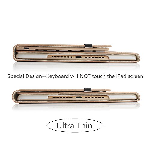 iPad Pro 9.7 Keyboard Case, BoriYuan Aluminium Backlit Smart Detachable Wireless Bluetooth Keyboard Folio Flip Magnetic PU Leather Stand Cover For Apple iPad Pro 9.7inch+Screen Protector+Stylus, Gold