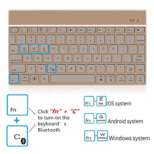 【NOTE】: After you turned on the keyboard, the indicator LED will only light up for a while, then it will turn off, but the keyboard is still on, what you need to do is click the "fn"+"C" keys to pair the Bluetooth