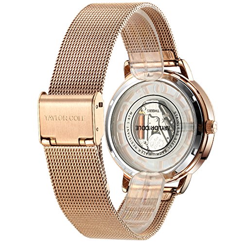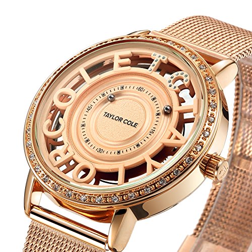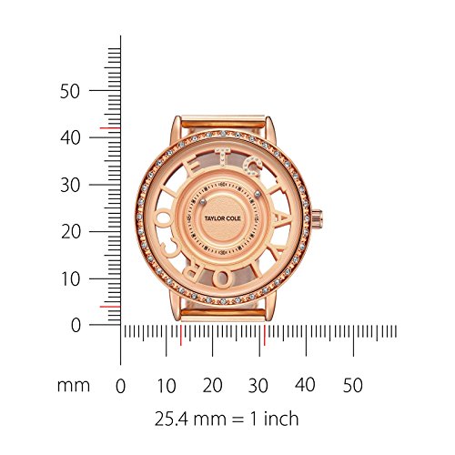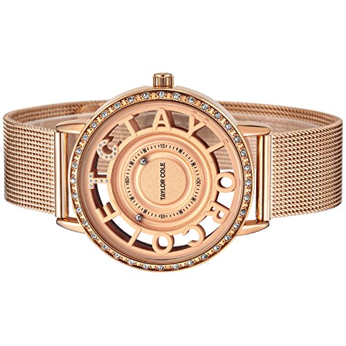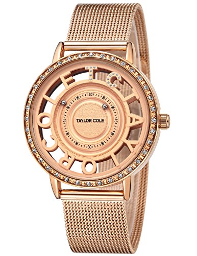 Taylor Cole Ladies' Luxury Unique No Hands Design Crystal Bezel Quartz Stainless Steel Band Wrist Watch TC129