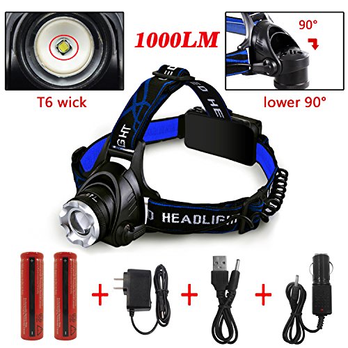 ULTRA-BRIGHT HEADLAMP WITH RECHARGEABLE BATTERIES, DLAND LED LIGHT WATERPROOF ZOOMABLE 3 MODES 1000 LUMENS HANDS-FREE HEADLIGHT TORCH FLASHLIGHT
