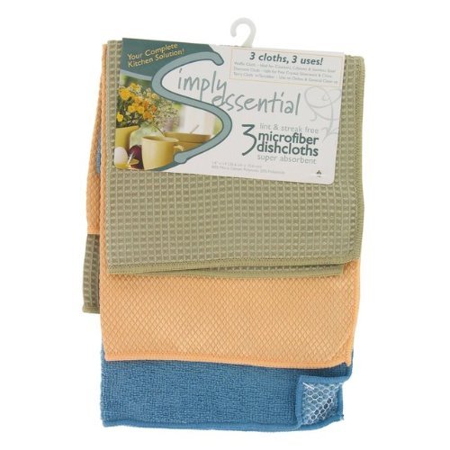 -. Feature : One set of three (3) microfiber dishcloths measuring 14 inches x 14 inches each / Waffle cloth - Ideal for counters, cabinets and stainless steel / Diamond cloth - Safe for fine crystal, stemware and china / Terry Cloth w/scrubber - Use on dishes and general clean up