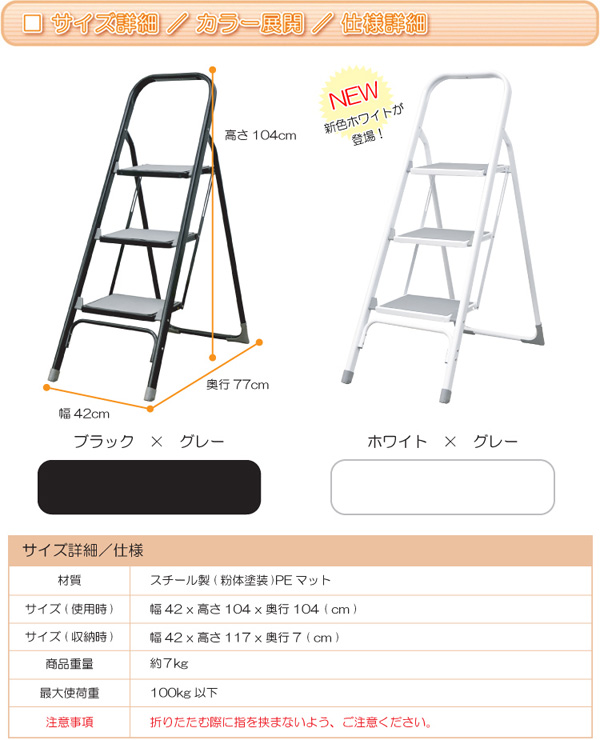●ご注意:折りたたむ際、指などを挟まないようにご注意下さい。
