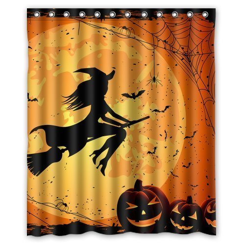 -. Title : Happy Halloween People Flying On Moon Bathroon Waterproof Cool Shower Curtain Family Choice 60(w) x 72(h)