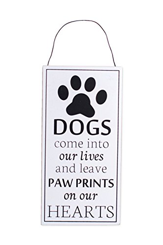 Dogs Leave Pawprints on Hearts 8 x 4 Inch Wood Hanging Wall Plaque Sign