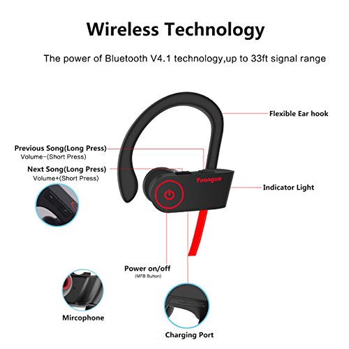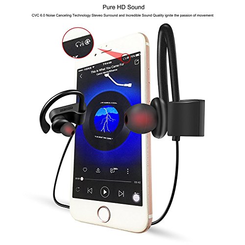 -. Feature : ♪ True HD High Fidelity Sound ♪ Featuring latest Bluetooth V4.1 CSR technology and state of the art acoustic components that produce incredible sound quality with deep bass and crystal clear treble. With Noise Suppression technology and hand-free calling focus on your favorite music and answer calls without skips or missed words. / ♪ Wear it ! Enjoy Your Running ! ♪ Ergonomic and flexible in-ear design, super soft silicone over-ear hooks guarantees a firm, secure fit without hurting your ear, enables comfortable wearing experience without falling out.Ultra-high waterproof material ,no longer worry about that water and sweat will damage it! / ♪ Longest Battery Life ♪ The new and improved lithium polymer battery allows seamless enjoyment of music for up to 8 hours and 270 hours stand-by with a quick charge of only 1.5 hours. / ♪ Advanced Technology ♪ The earphone can connect with two smart phones at once.Don't be afraid missing calls of both phones when you are driving,working,etc. / ♪ Order Now ! ♪ Each part of earbud including the short charging cable, the ear tips and carrying case, all are made from high quality material which gives a sleek and elegant vibe.And we have excellent customer service groups and can offer fan-favorite lifetime warranty.Welcome to share your product experience with us!