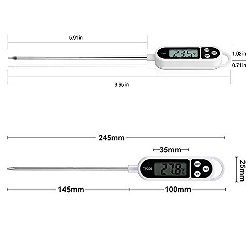 - 4. Widely Kitchen Digital Meat Thermometer: range of -58℉ to 572℉(-50-300℃), Accurate to ± 0.1℉ (between -4F to 392F) makes these utensils the best for use when grilling on your gas barbecue or turkey fryer, making candy, using hot oil to deep fry, brewing beer and wine and even making cheese and bread.