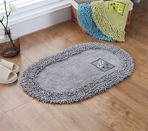 JSJ_CHENG Solid Color Cotton Chenile Microfiber Bath Area Rugs for Bathroom, Bedroom, Living Room (23.6inch by 35.4inch, Gray)