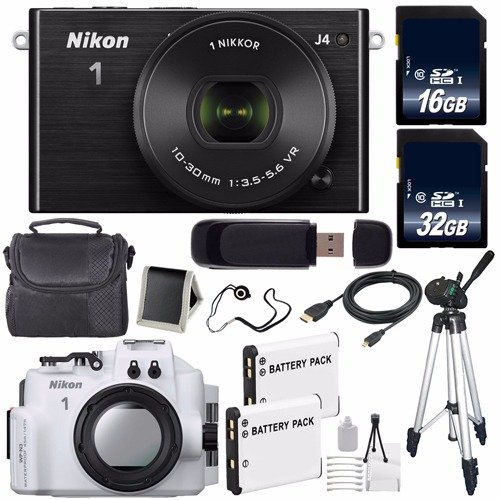 Nikon 1 J4 Mirrorless Digital Camera with 10-30mm Lens (Black) (International Model No Warranty) + Nikon WP-N3 Waterproof Housing + EN-EL22 Battery + 96GB Total Memory + 6AVE Bundle