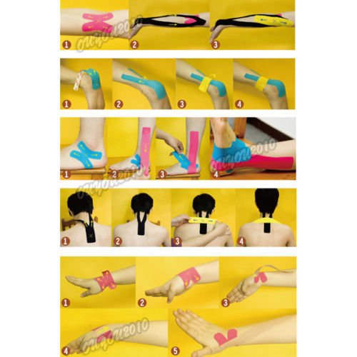 - Feature : Shipped from Hongkong by economical Post Mail.It will be delivered between 15-25 days.The parcel can't be traced.But please don't worry about it.we'll answer for all shippment risk.if you can't get it up to 30 days.please email us,we'll refund all payment. / A rehabilitative taping technique applied over muscles to reduce pain and inflammation, relax overused tired muscles and support muscles movement. / This taping is designed to improve the body's natural healing process by helping to increase blood flow around the muscle. It is non-restrictive, allowing for a full range of motion; the wave pattern adhesive backing moves with the skin and muscles / Support your muscles and joints without restricting movement / Correct joint malalignment and improve proprioception