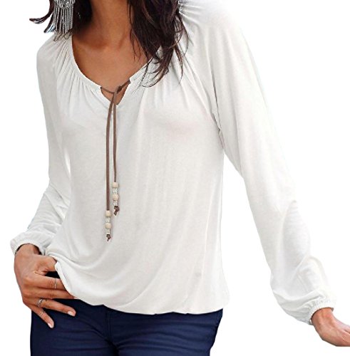 -. Title : Nicellyer Women Straps Round Neck Long Sleeve Drawstring Tees Tank Top White XS