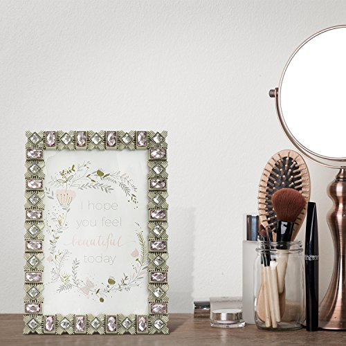 Parisian Home Pastel Perfection 4" x 6" in. Picture Frame for Home, Living Room, Photo, Bedroom, Girls, Women, Pink and Silver Jewels