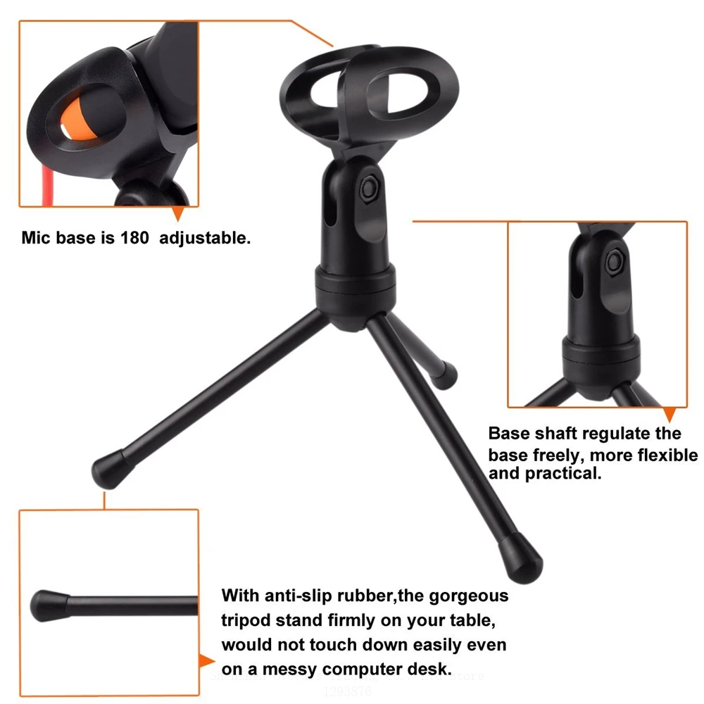 4: Computer Microphone with Stand: Flexible head for 360 degree,you can fix the microphone on the desk with the folding tripod