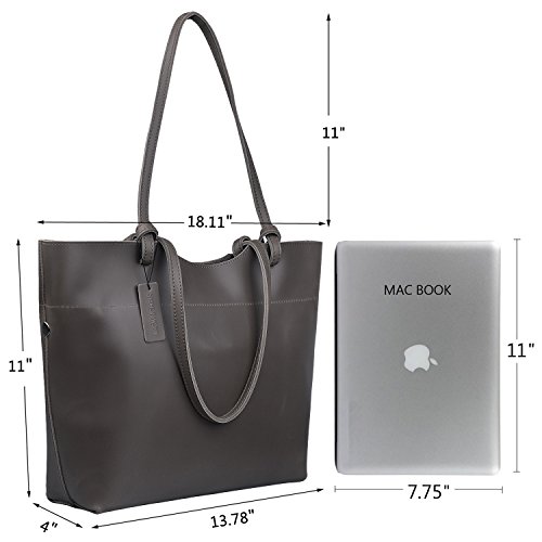 - LARGE CAPACITY COMPARTMENTS: Zipper top closure, and there are 2 divide compartment for your better organizing, and inner 2 zipper pocket, 2 open pouch. Fantastic leather tote handbag that can hold books, laptop, mobile phone, wallet, IPAD, umbrella, cosmetic,clothes and other daily things