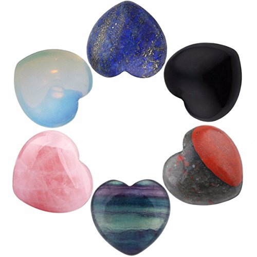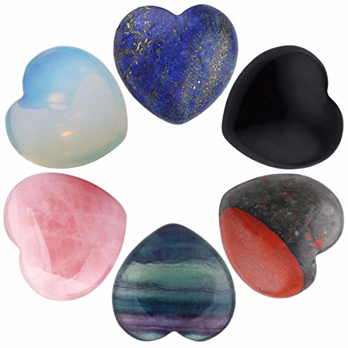 (SUNYIK)/Furniture Decor/Home Decor/DIRECT FROM USA/SUNYIK Assorted Stones Carved Puff Heart Pocket Stone,Healing Palm Crystal Pack of 6(0.8")