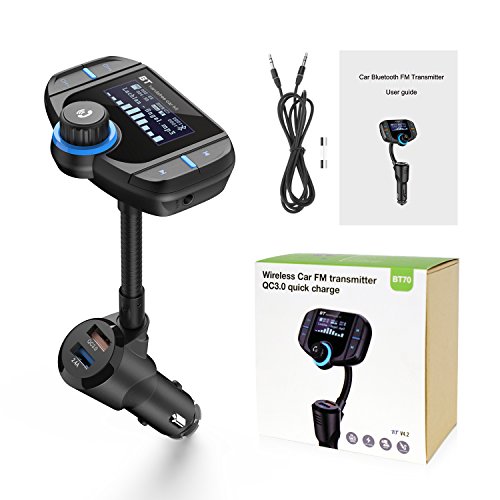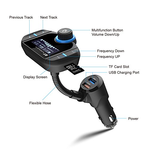 Bluetooth FM Transmitter: Using the bluetooth to connect with the phone and the FM Transmitter, also you can listen to the music with TF memory card or AUX Cable. Support FM frequency range from 87.5MHz to 108.0MHz.Tune the car FM radio frequency same as the device.