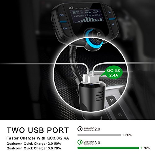 Big Screen Display : Car battery voltage level will be detected and displayed on while the car starts. You can enjoy the song title and incoming numbers. It is easy to operate this Bluetooth FM Tranmitter