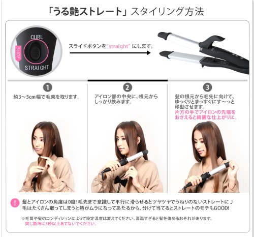 Renewal popular 2WAY straight & curl of first place acquisition Amazon best-selling curling irons to version up! Allows foreign correspondence of the long-awaited! 100 ~ 240V specification. (※ conversion plug not included) Press during the straight is now easier than ever model of barrel opening and closing part become wide. Ion ceramic plate that does not damage the digital LCD ● Easy-to-read simple straight hair and curl switching ● 5 degree steps MAX220 ℃ ● by one touch Manufacturers 1 year warranty glad auto power OFF function of 360 ° ● ● code relief that tangle-free grip ● of rubber coating which is hard to slip