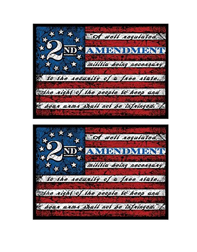 -. Feature : Decal Features: An American Flag with 2nd AmendmentTM logo and written in the stripes, the text: "A well regulated militia being necessary to the security of a free state, the right of the people to keep and bear arms shall not be infringed." / 2 Pack Sticker Set / Measures: 5" wide x 3.5" high / Made of Durable Outdoor Vinyl / Imported / Looks Great On Your Truck, Car, RV, Motorcycle, Hard Hat, Tool Box, or Gun Safe / Get One For You and Give One As A Gift! / Artwork Copyrighted & Licensed by THIS WE'LL DEFEND / TWD LLC / Imported