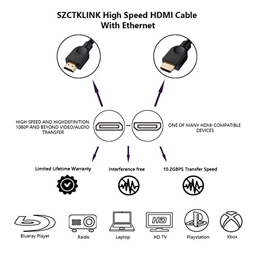HDMI Cable 15 ft, SZCTKlink High-Speed HDMI Cable 15 Ft in Black - 3D and 4K Resolution C1004-01-15ft