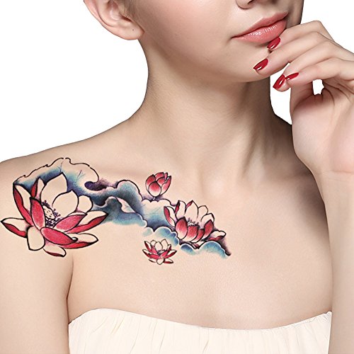 TAFLY Tattoo Flowers Sexy Body Art Lotus Temporary Tattoos Stickers for Women's 2 Sheets