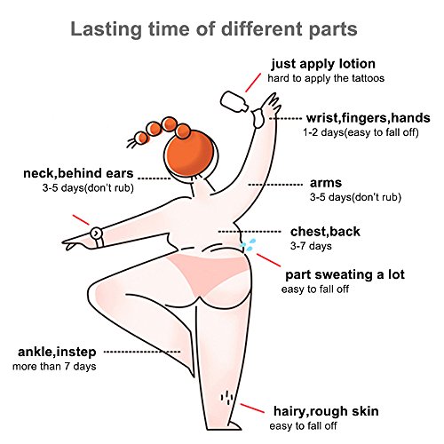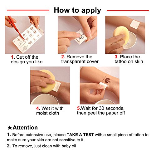 - ★EASY TO APPLY & REMOVE- Take on a brand-new look less than a minute! Just cut a desgin you like, put it on skin and wet it with moist cloth, then wait 30 second and peel the paper off. To remove it, baby oil will work well. You can wear it on arms, wrist, ankles and ect.