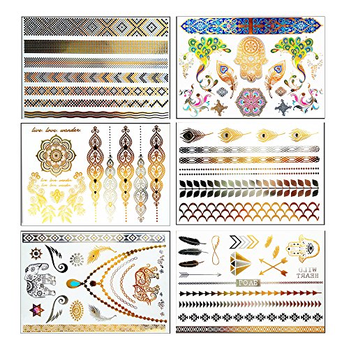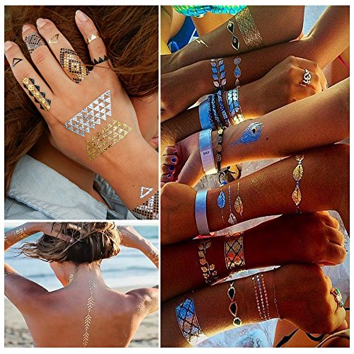 - ★WATERPROOF & LONG LASTING- The metallic temporaray tattoos are totally waterproof, which is perferct for beach, pool, party and other summer activities! Once correctly applied, the tattoos can last more than a week