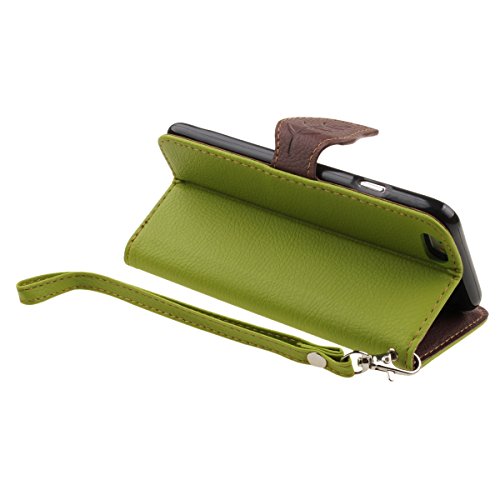 Wallet Case for iPhone 6 Plus,Flip Case for iPhone 6 Plus 5.5",IKASEFU(TM) Leaves Holster Buckle Pattern PU Leather Carrying Protective Case with Stand Credit Card Holder Case for iPhone 6 Plus 5.5"inch Screen(Leaf:Green)