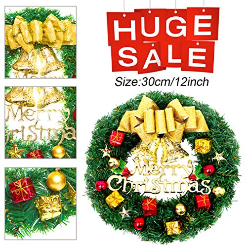 Christmas Wreath Christmas Decorations Front Door Decor Christmas Ornament, Gold, 30cm