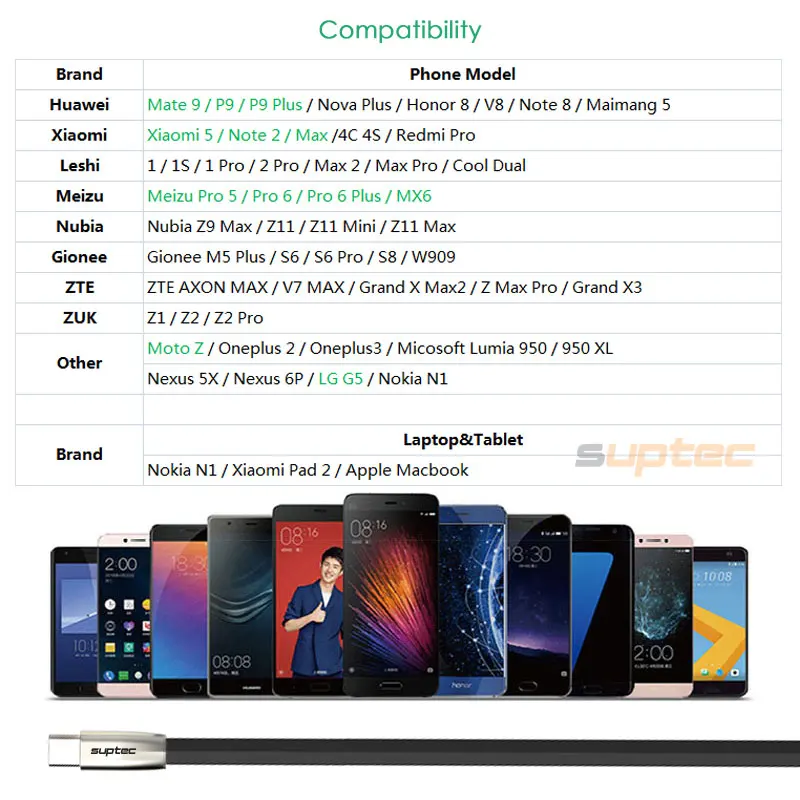 Compatible Model 3:USB Type-C Cable for Xiaomi Mi5 Mi4C Huawei P9 P9 Plus Mate 9 Moto Z