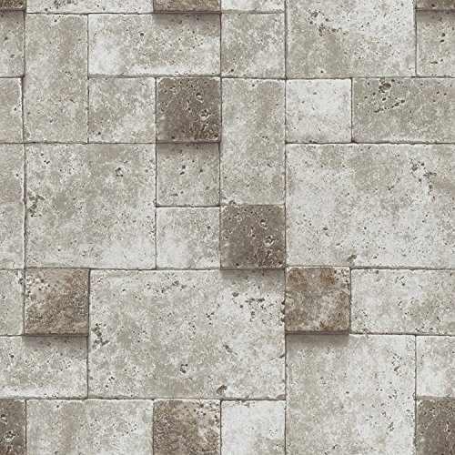 Blooming Wall Modern Cultural Brick Graphics Wallpaper Roll for Livingroom Bedroom, 20.8 In32.8 Ft=57 Sq.ft,gray/brown