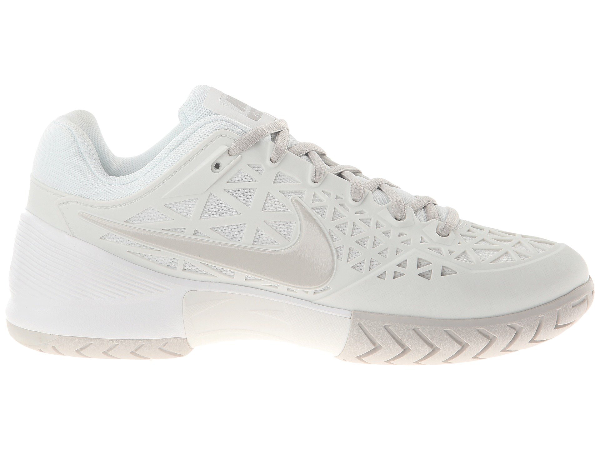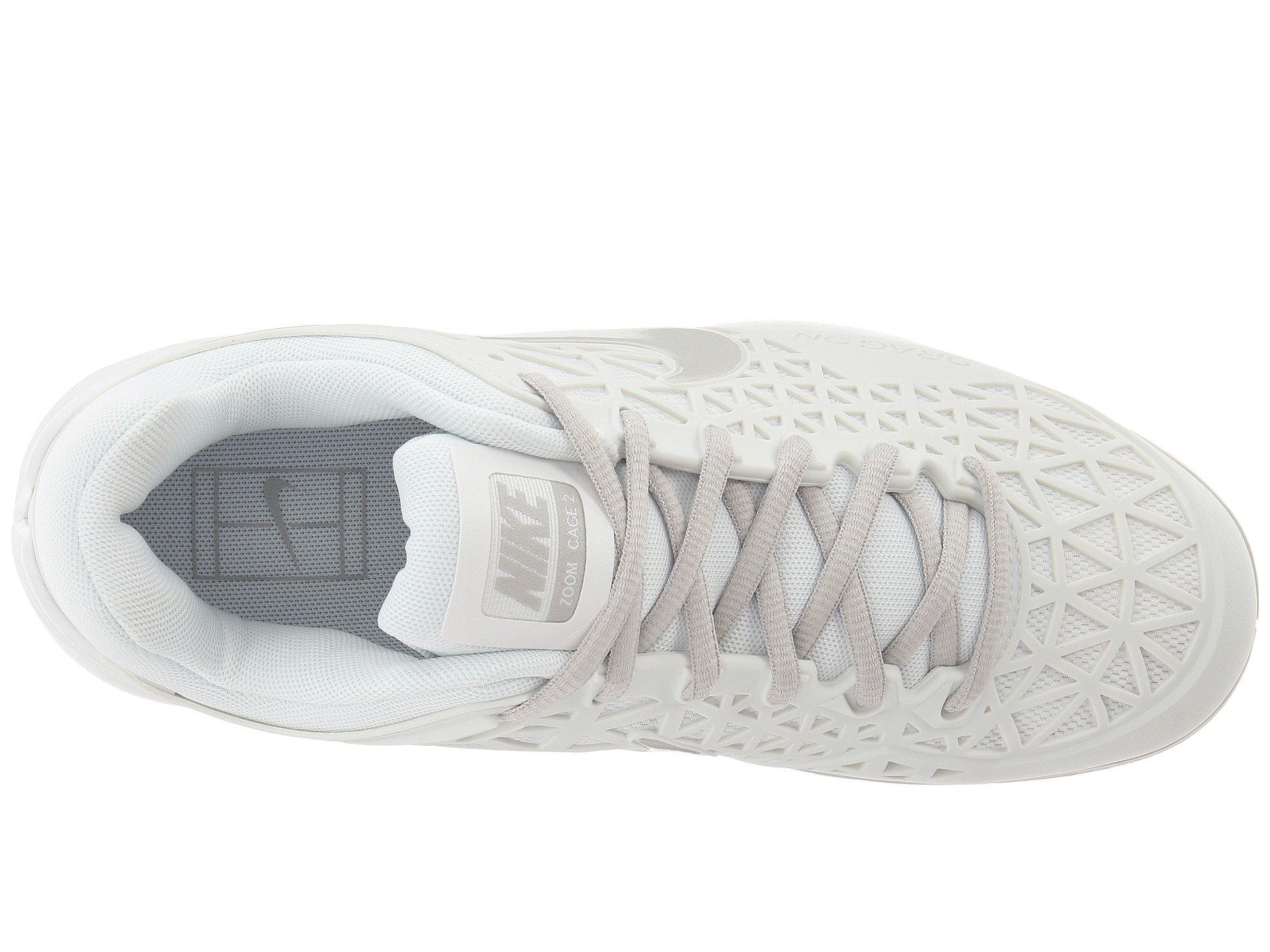 | Product Information SKU: #8427204Combining hardcore durability with lightweight support, the Nike? Zoom Cage 2 is the ideal shoe for long matches on the court. Mesh and synthetic upper materials. Padded collar and tongue for comfort. Lace-up front for optimum fit. Nike Drag-On technology offers durability where you need it. Nike Zoom Air in the heel for lightweight, responsive cushioning. Midsole heel wrap-up is split down the middle for added support and agility. Data-driven XDR outsole delivers extreme durability and incredible traction. Thicker outsole in high-wear areas helps guard against scuffs and everyday wear and tear. Herringbone outsole gives you excellent traction on hard court surfaces. Imported.Product measurements were taken using size 9, width B - Medium. Please note that measurements may vary by size.Weight of footwear is based on a single item, not a pair.Measurements: Weight: 12.5 oz |