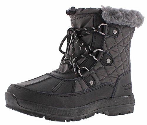 Studio : Bearpaw Publisher : Bearpaw Binding : Apparel Product Description 6" tall, feminine and lightweight, quilted waterproof boot with nylon/leather upper. full waterproof bootie construction, topline bungee lace with adjustable toggle, wool blend collar and lining with sheepskin footed, molded rubber tar outsole for durability and traction. 0